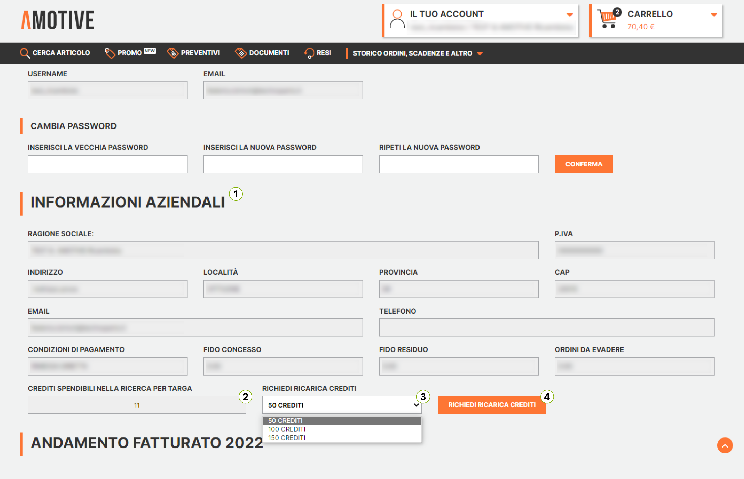 Richiedere la ricarica dei crediti dal proprio profilo utente